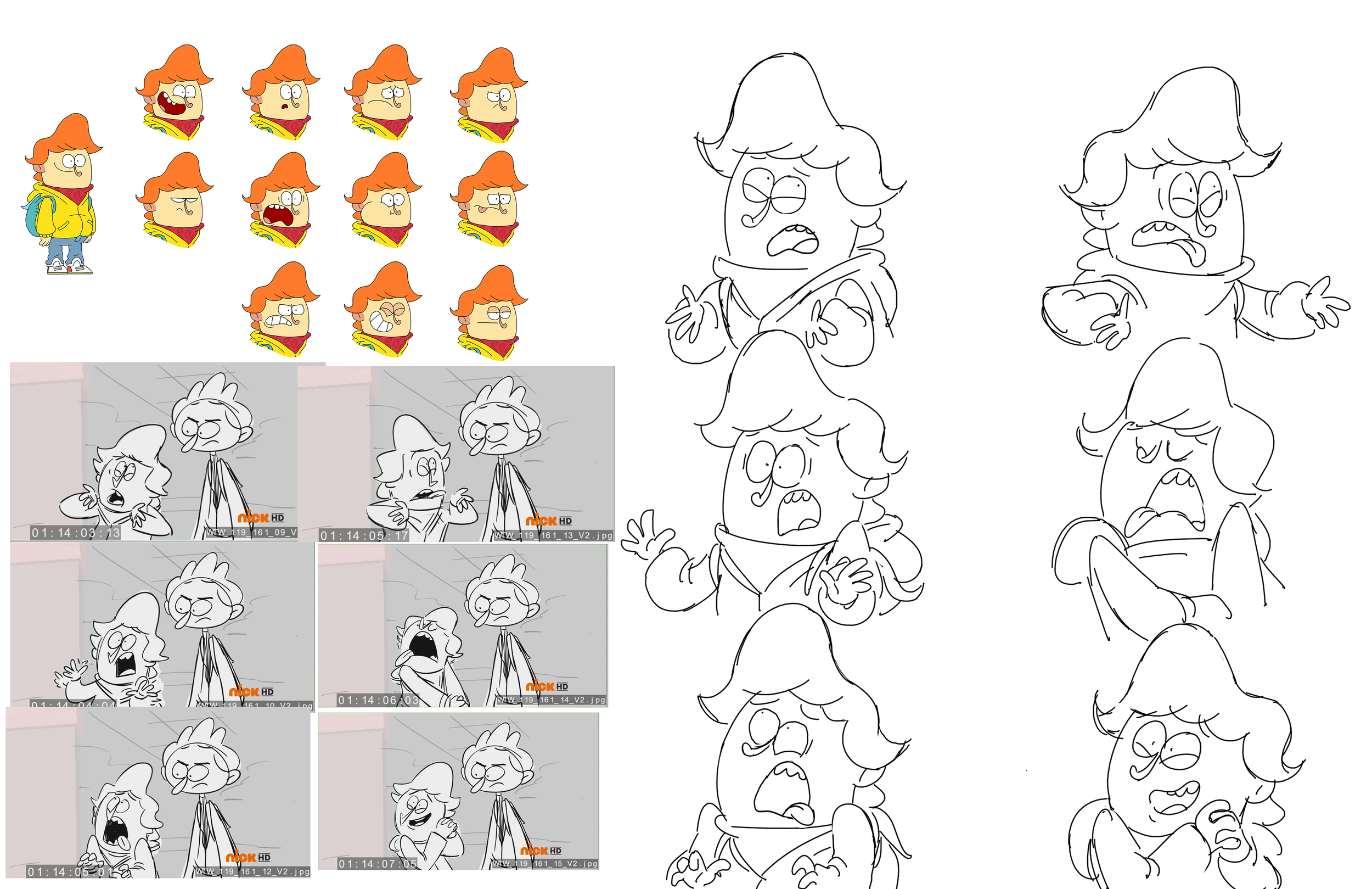 Olly expression and pose sketches done to match boards